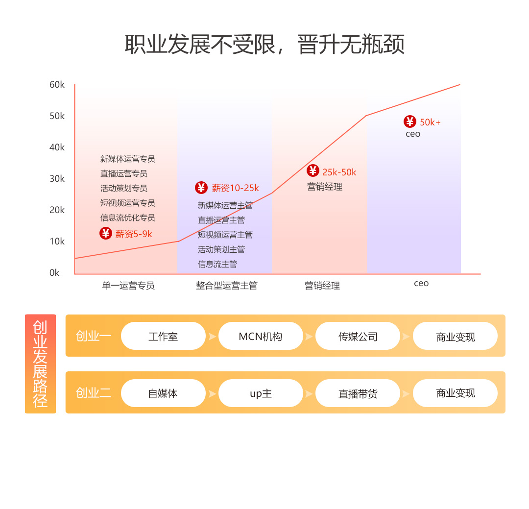 3个模块;27个章节;150+技能点;20+新媒体营销方法