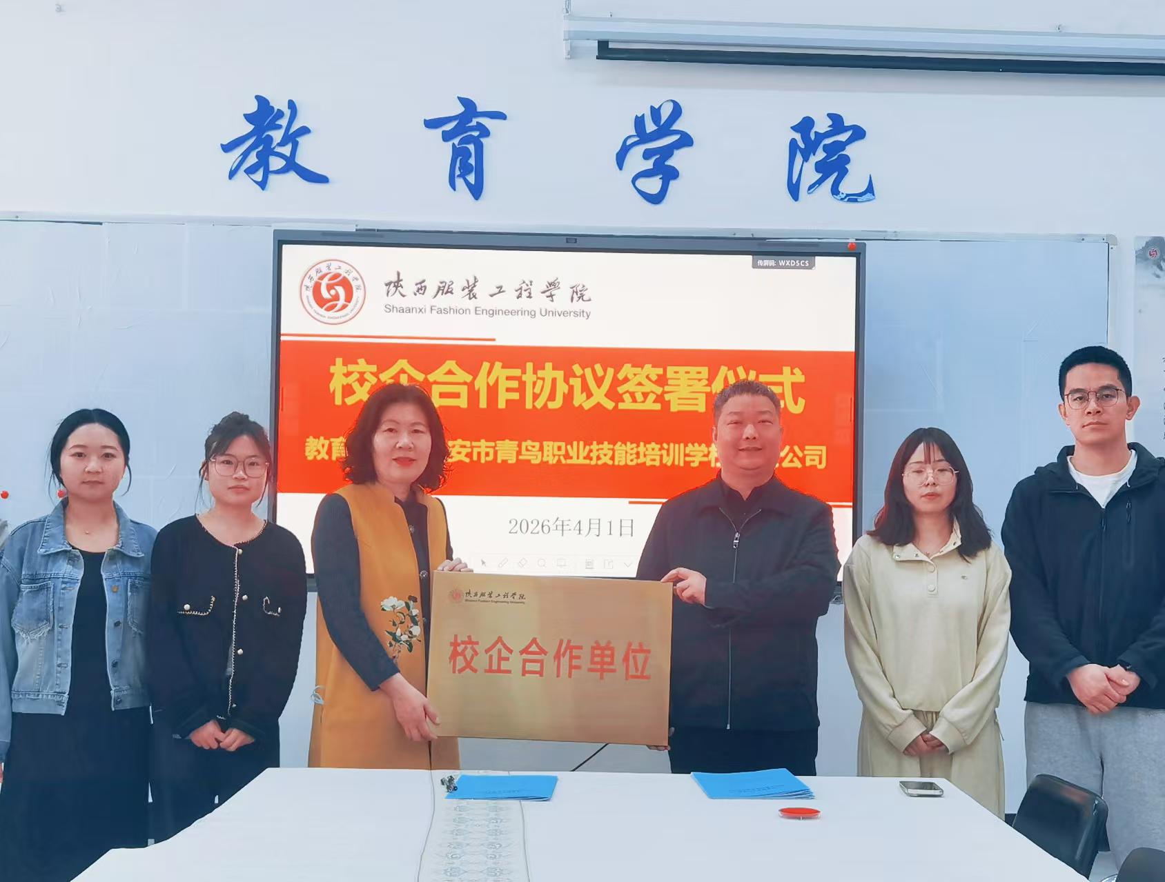 2026 年 4 月 1 日,西安北大青鸟学校与陕西服装工程学院校企合作协议签约暨授牌仪式圆满举行。